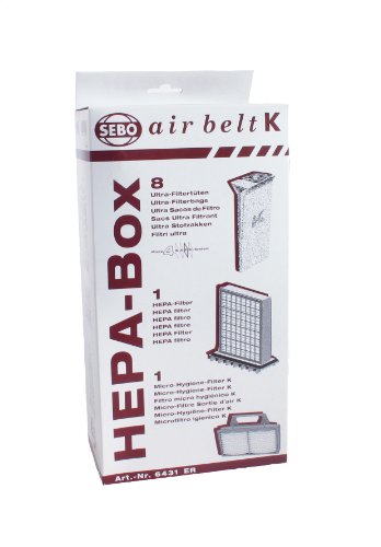 Overstock Vacuum Bags in Sebo- 6431Er Hepa Service Box For K Series Vacuum With 8 Ultra Bags, Exhaust Filter And Hepa Pre-Motor Microfilter